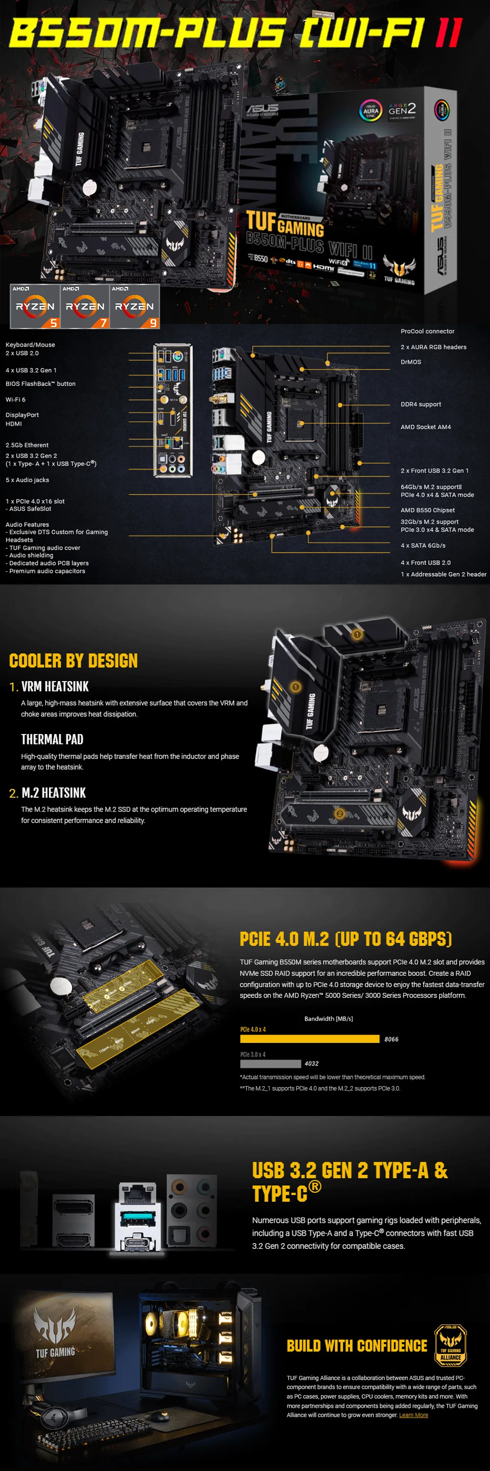 Socket AM4 Asus TUF GAMING B550M-PLUS (WI-FI) II Motherboard DDR4 128GB PCI-E 4.0 M.2 CrossFireX Overlocking AMD RYZEN B550 New